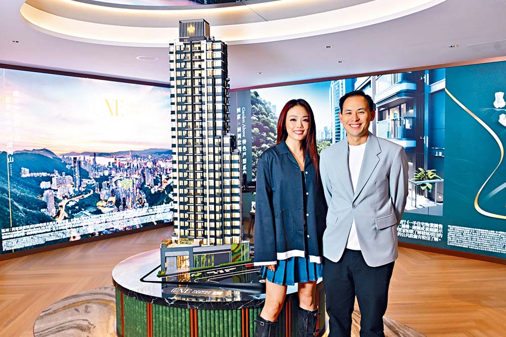 ▲容祖儿在英皇国际副主席杨政龙陪同下,了解英皇国际新盘ONE JARDINE 'S LOOKOUT。