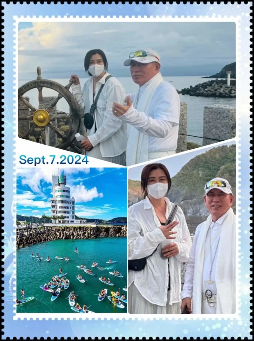照片可见,王祖贤身穿白色阔恤衫,配浅灰色百褶长裙,斜孭一个黑色包包,脚踏一双黑色凉鞋。每张照片都看到王祖贤戴上口罩,遮掩半张脸来增仙气,她大方与酒店老板及酒店职员合照,更为师姐签名。其中一张照片更看到王祖贤与三位出家人、酒店老板及朋友晚膳,王祖贤更虔诚地双手合十拍照。据台媒指,王祖贤入住宜兰苏澳镇全台唯一的灯塔酒店,居住环景300度的海景房,而一晚住宿6800台币(约1661港元)。
