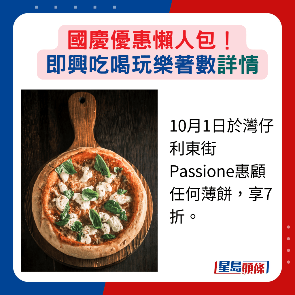 ▲10月1日于湾仔利东街Passione惠顾任何薄饼,享7折。