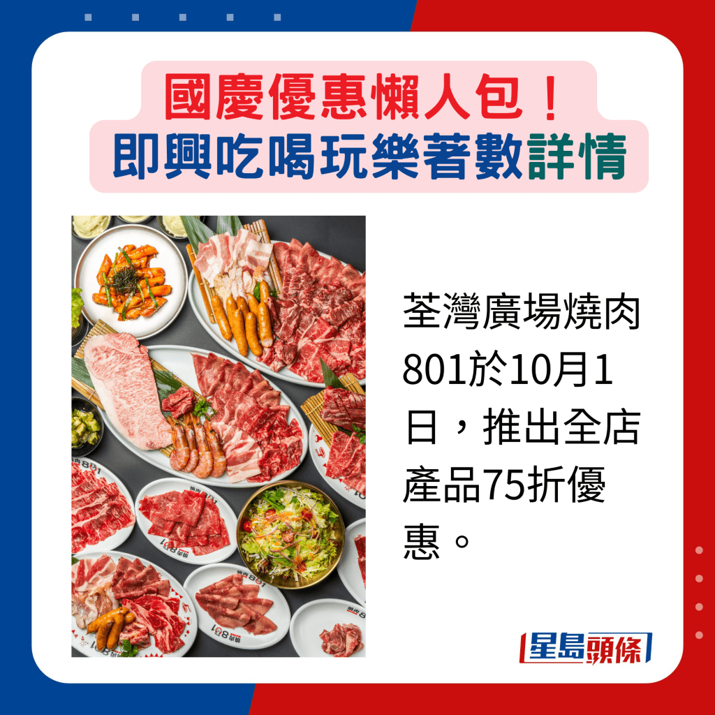 ▲荃湾广场烧肉801于10月1日,推出全店产品75折优惠。