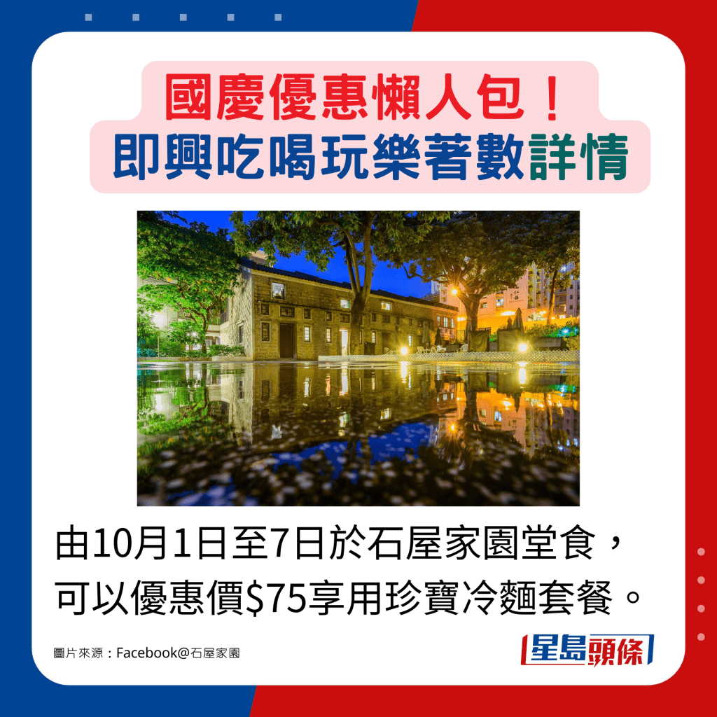▲由10月1日至7日于石屋家园堂食,可以优惠价$75享用珍宝冷面套餐。