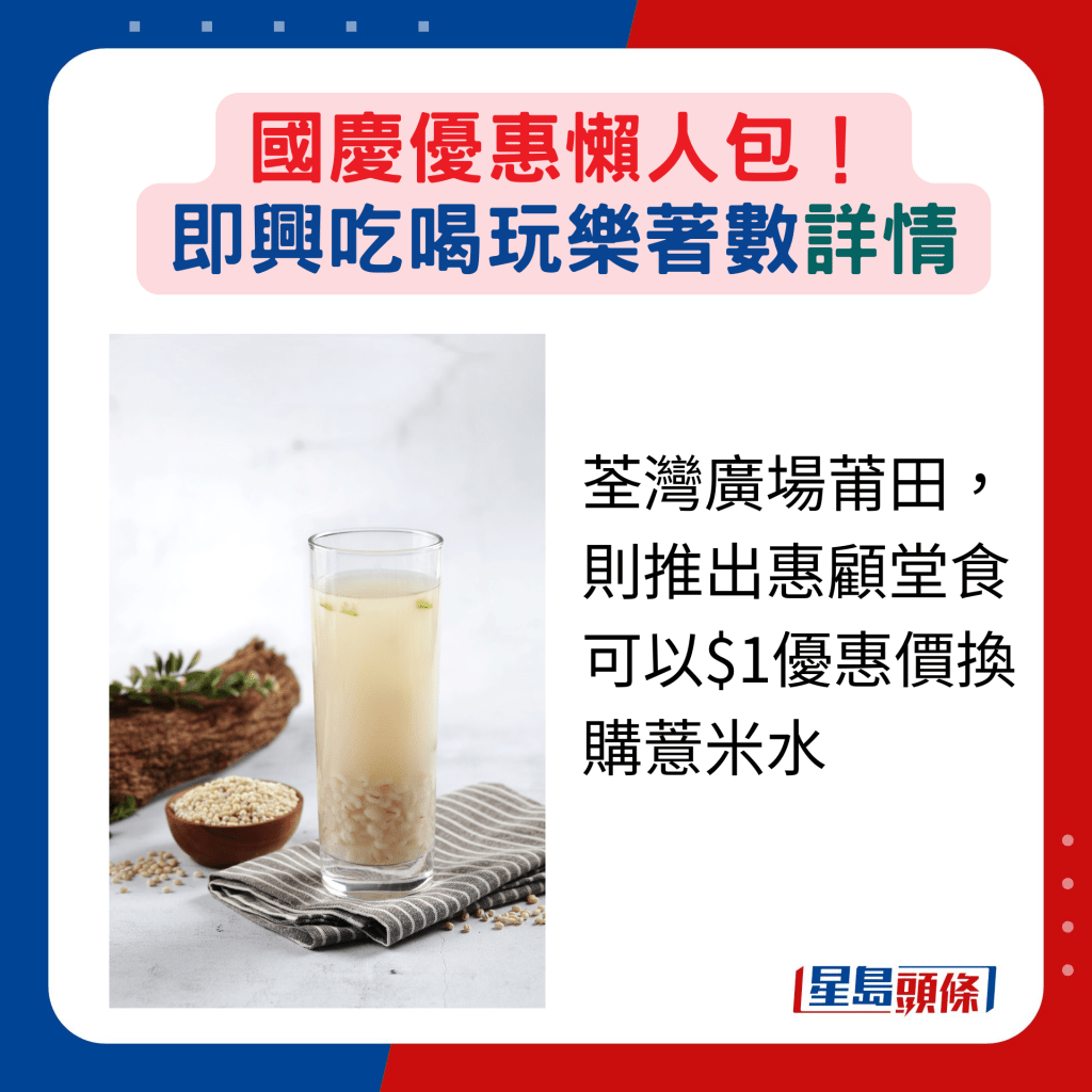 ▲于荃湾广场莆田,则推出惠顾堂食可$1优惠价换购薏米水。
