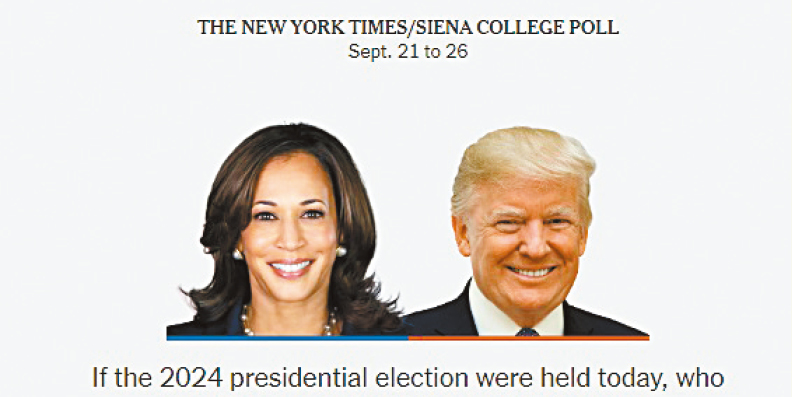 ▲《纽约时报》与锡耶纳学院联合调查发现,哈里斯在密州支持度领先特朗普1个百分点。 纽约时报