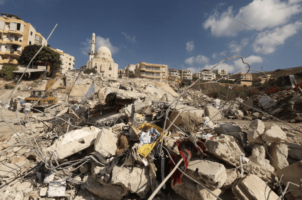 ▲2024年9月30日,在黎巴嫩南部真主党和以色列军队之间持续的敌对行动中,以色列周日袭击了艾因德勒布市。 路透社