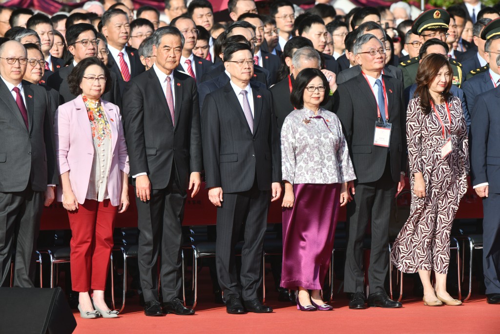 ▲李家超等人出席中华人民共和国成立七十五周年庆祝活动升旗仪式。