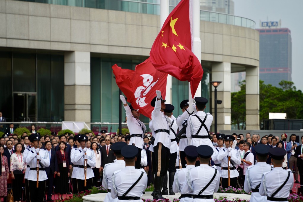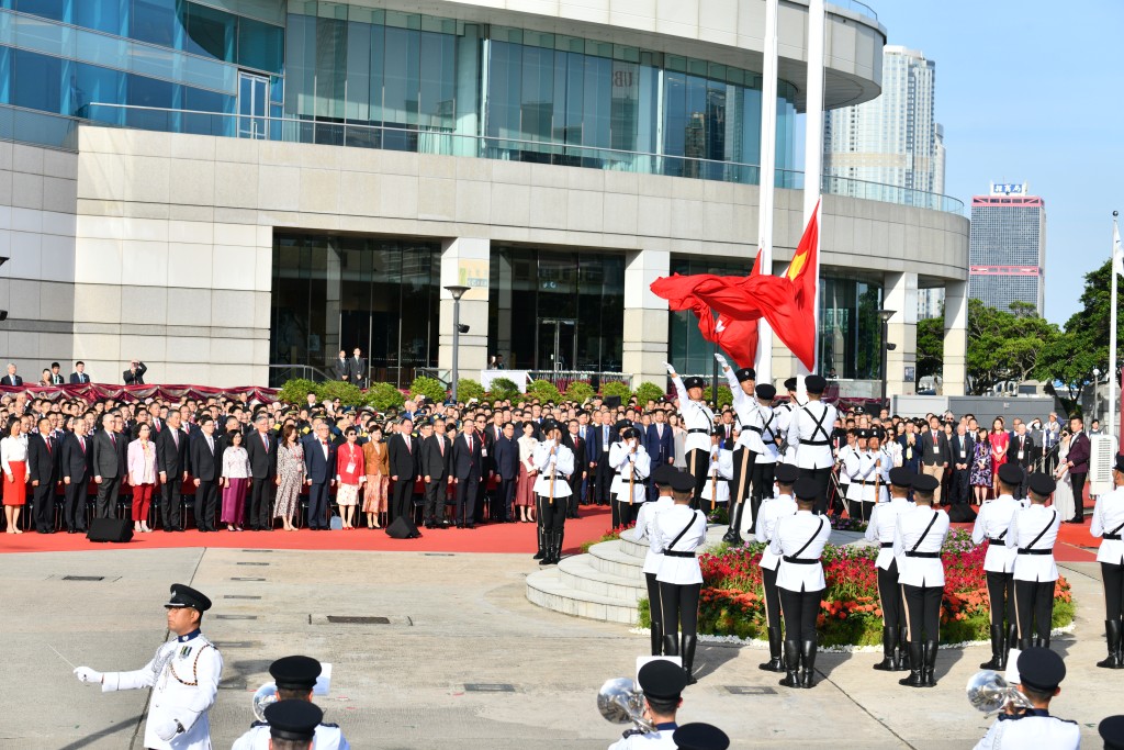 升旗仪式于上午8时在湾仔香港会议展览中心外的金紫荆广场举行,社会贤达及制服团队成员出席仪式,现场不设公众观礼区。行政长官李家超、全国政协副主席梁振英、中联办主任郑雁雄、前行政长官林郑月娥、曾荫权与政府高层官员、立法会主席梁君彦等人出席升旗礼。李家超伉俪于早上7时52分到场。