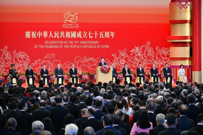 10月1日国庆日,香港特区政府和中央驻港机构都举行国庆升旗仪式,祝贺国家成立75周年。前行政长官董建华连续第四年未有现身升旗礼及国庆酒会。升旗仪式完成后,政府会在会展内举行国庆酒会。