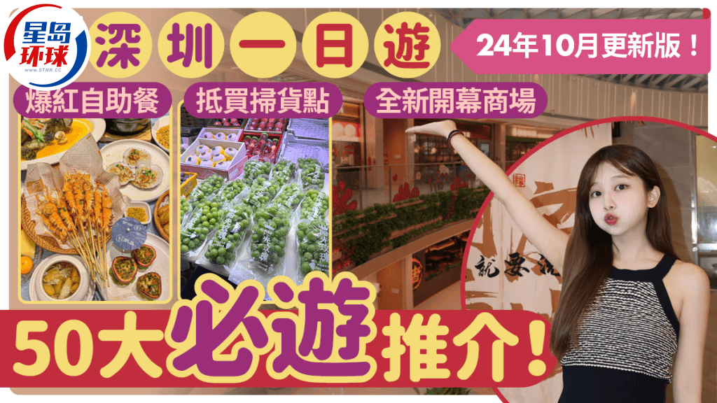 深圳一日游最强食买玩攻略!快闪深圳寻找美食兼玩乐景点的港人愈来愈多,加上小红书不时都会有最新的网红美食推介,只玩一日绝对未够喉! 2024下半年深圳有超多新开幕的商场,例如万丰海岸城、大运天地、 天河城南馆、前海壹方汇等,还有多个商场排住队登场,全部都非常吸引! 如喜欢扫货,可以去有3间分店的俄货超市,或是到Costco、福田农批市场等疯狂购物买平货! 情侣们想拍住拖去打卡玩乐的则可到免费的梅拉尼亚小镇打打卡影靓相等。 这次精选了50大最新最强的深圳旅游打卡热门地、玩乐蒲点、必试美食等的交通及开放时间资料,立刻起行,趁周末长假北上深圳快闪玩返日!