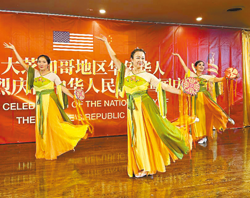 大芝加哥地区的华侨华人热烈庆祝新中国成立75周年、中美建交45周年的活动一波接一波的展开,从中国驻芝加哥总领馆同仁在市中心凯悦大酒店设招待酒会、9月28日在南华埠举行盛大的游行活动、西郊举行龙的传人专场演唱会、唐人街一群爱国爱乡的侨胞举办“游子赤诚歌舞献祖国”,到9月29日晚在南富丽华酒楼,由美国华人海外交流协会、 芝加哥江门五邑同乡会(合称两会)、大芝加哥地区华侨华人联和会(华联会)举办的庆祝新中国成立75华诞晚宴,热情高涨的庆贺祖国生日的盛事接踵而来,华人社区充满了喜悦与欢乐。