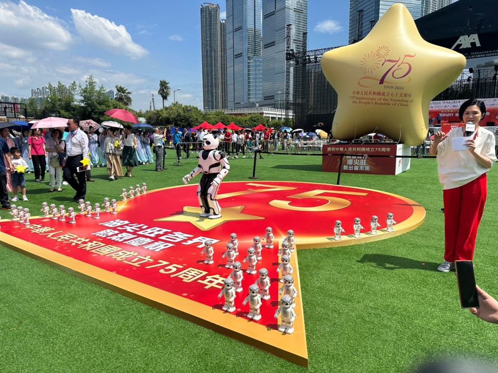 活动期间,36名香港童军进行国旗与区旗的展旗礼,现场嘉宾、机械人及市民共同站立在18尺高的巨型星星旁,高声朗读标语口号同心国庆同行开新篇,展现与祖国共同进步的精神。 活动亦有大型熊猫机械人带领一众小型悟空机械人表演舞蹈《我和我的祖国》,熊猫机械人随后表演太极拳,展现科技与文化的融合。