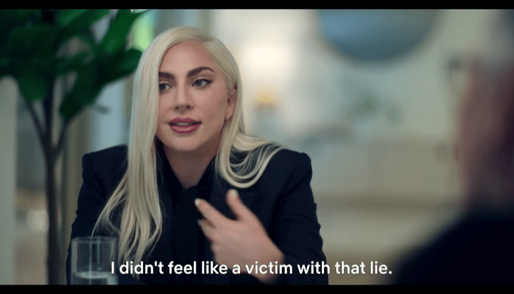 其实向来出位敢言的Lady Gaga曾多次自揭,提及遭强奸、虐待与禁固,在数年前更在节目提及曾遭人因奸成孕。遭多次强奸后,Lady Gaga指自己患上创伤得压力症(PTSD),需靠药物控制病情,若没药物辅助则需大量吸烟。Lady Gaga曾形容病发时,感觉似被人痛殴一拳,让她不断大叫、全身发麻、从头到脚感到强烈刺痛,需要交由精神科医生进行评估。Lady Gaga同时亦曾提及19岁入行时,被一位音乐监制要求脱去衣服,其后她拒绝并离开,不过却被要胁销毁她的音乐作品。