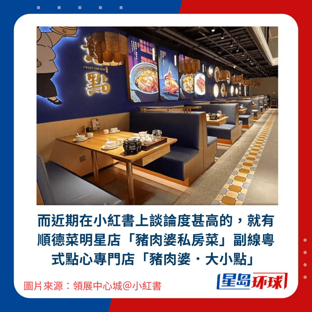 深圳新商场愈开愈多,连带有不少新餐饮食肆开到深圳来,令港人北上更客易吃到来自全国的美食!而近期在小红书上谈论度甚高的,就有顺德菜明星店“猪肉婆私房菜”副线粤式点心专门店“大小点”,首次攻入深圳,于领展中心城开业,除点心外还有总店的招牌菜供应。这间明星店在内地人气高企,连谢霆锋、四哥谢贤、阿叻陈百祥,以及立法会议员叶刘淑仪都捧场!不过,有网民就表示不睇好深圳店,皆因其菜式价钱非便宜,一只烧鹅就叫价¥598,简直“贵得要死”。