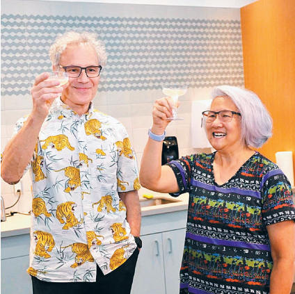 ▲安布罗斯和夫人李罗莎举杯庆祝获得诺奖。
