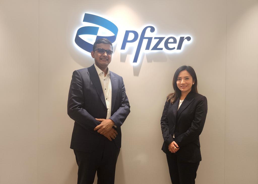 ▲辉瑞香港及澳门区域总经理Krishnamoorthy Sundaresan和医学总监Eugenia Ng。