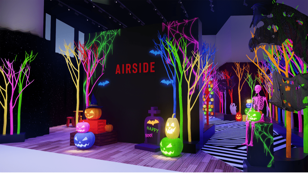 AIRSIDE于今年万圣节联同“港鬼故”、“Mental Bread@港式情侣”,推出全港首个沉浸式鬼屋剧场杀《鬼域寨城》。鬼屋分成5大区域并以地寨为主题,大家想尽办法逃出生天之馀,更要于于如同迷宫的城寨内寻找鬼魂了解线索,找出“女厕灵异事件”的凶手及真相。除了鬼屋之外,AIRSIDE更为小朋友特设“迷幻夜光乐园”,现场设有不同夜光南瓜,最适合为盛装打扮的小朋友打卡。AIRSIDE于万圣节正日晚上举行“Canton Disco Night”,请来尹光担任表演嘉宾,大家届时换上城寨主题服饰参加派对狂欢!