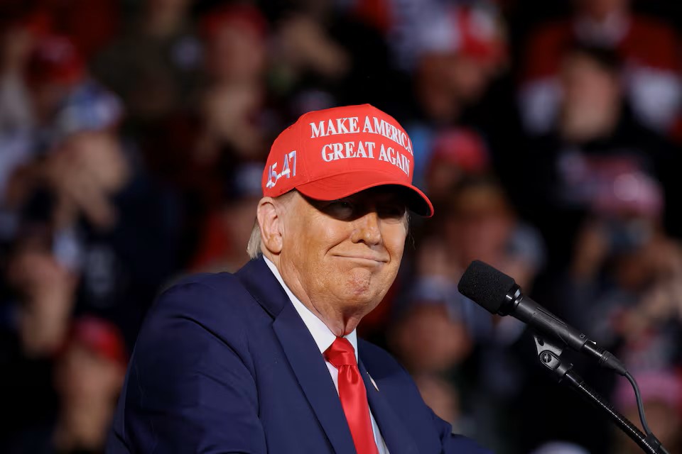 ▲特朗普在多个民调中些微落后对手哈里斯。路透社
