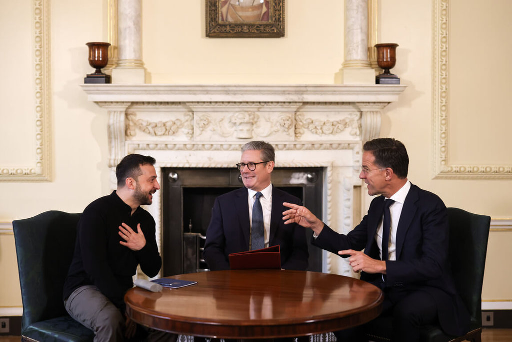 吕特1日就任北约秘书长,3日即访问乌克兰。他今天来到英国,与首相斯塔莫(Keir Starmer)及泽连斯基举行三方会谈,并另与斯塔莫进行双边会谈。泽连斯基闪电访问伦敦、巴黎、罗马、柏林,推动他的“胜利计画”。