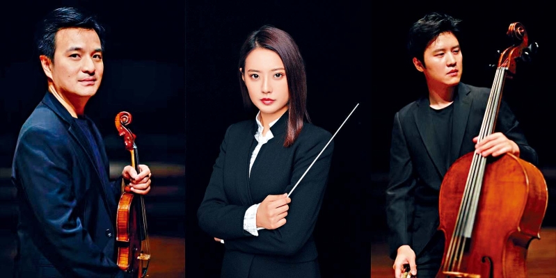 ▲(由左至右)广州交响乐团首席彭珂、助理指挥丁嘉滢及大提琴副首席潘畅。