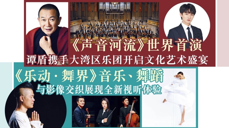 第四届“粤港澳大湾区文化艺术节”首次由香港担任主办城市,以谭盾大师的多媒体交响诗《声音河流》为开幕巨献。这部作品不仅是艺术节的焦点节目,更是一次跨越时空的文化探索之旅。此外,《乐动.舞界》香港篇融合音乐、舞蹈和影像,由香港跨领域艺术家曾文通带领制作团队与两地表演者共同呈现,为观众带来全新的视觉和听觉体验。