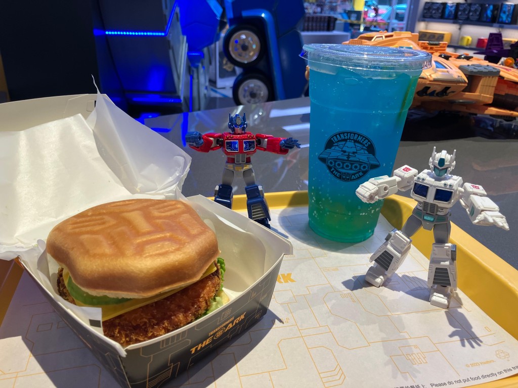 今次优惠“变形金刚1人套餐”包括有安格斯芝士堡、蟹肉牛油果堡或黑松露蘑菇披萨(3选1),饮品方面则有紫晶葡萄、黑洞之旅、蓝色星光(3选1),更加送变形金刚指定服一件!