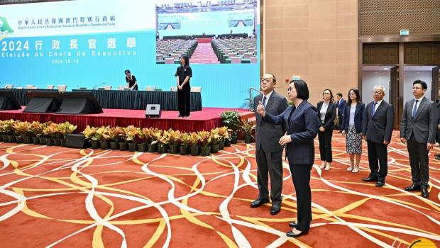 澳门新一任特首选举明( 13日 )日举行,澳门行政长官贺一诚今日( 12日 )前往中国与葡语国家商贸合作服务平台综合体,视察及了解选举场地和准备情况,并听取行政长官选举管理委员会的工作汇报,并指示选管要全力确保修例后的首次行政长官选举,依法有序顺利完成。