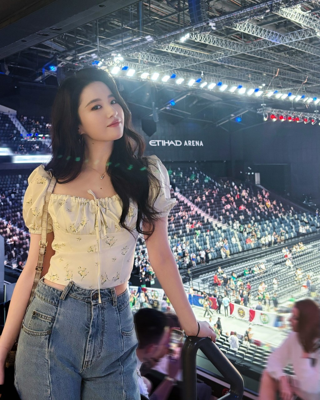 ▲刘亦菲为阿联酋首都阿布扎比体验代言人,近日飞住当地看NBA季前热身赛,由应届总冠军波士顿凯尔特人对上届冠军丹佛金块的赛事。