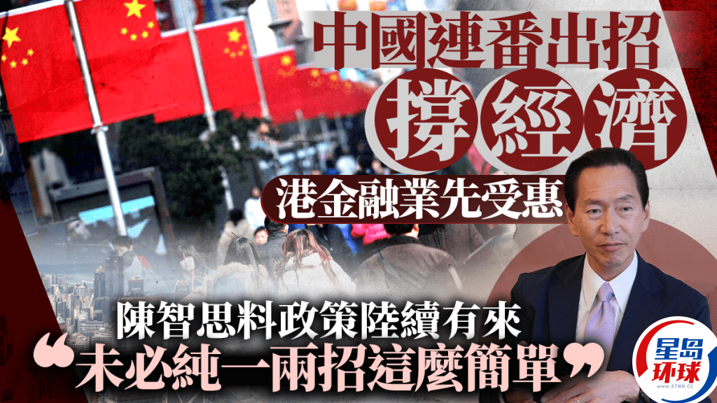 近期内地各部门密集出招刺激经济,上周六轮到财政部,预告将陆续推出包括发行特别国债等一揽子增量政策,支持地方化解债务风险,推动楼市止跌回稳。 团结香港基金主席陈智思接受《星岛头条》专访时表示,相信在明年3月两会前务必定要做出成绩,有信心内地及香港经济将逐步复苏,香港金融业将率先受惠。