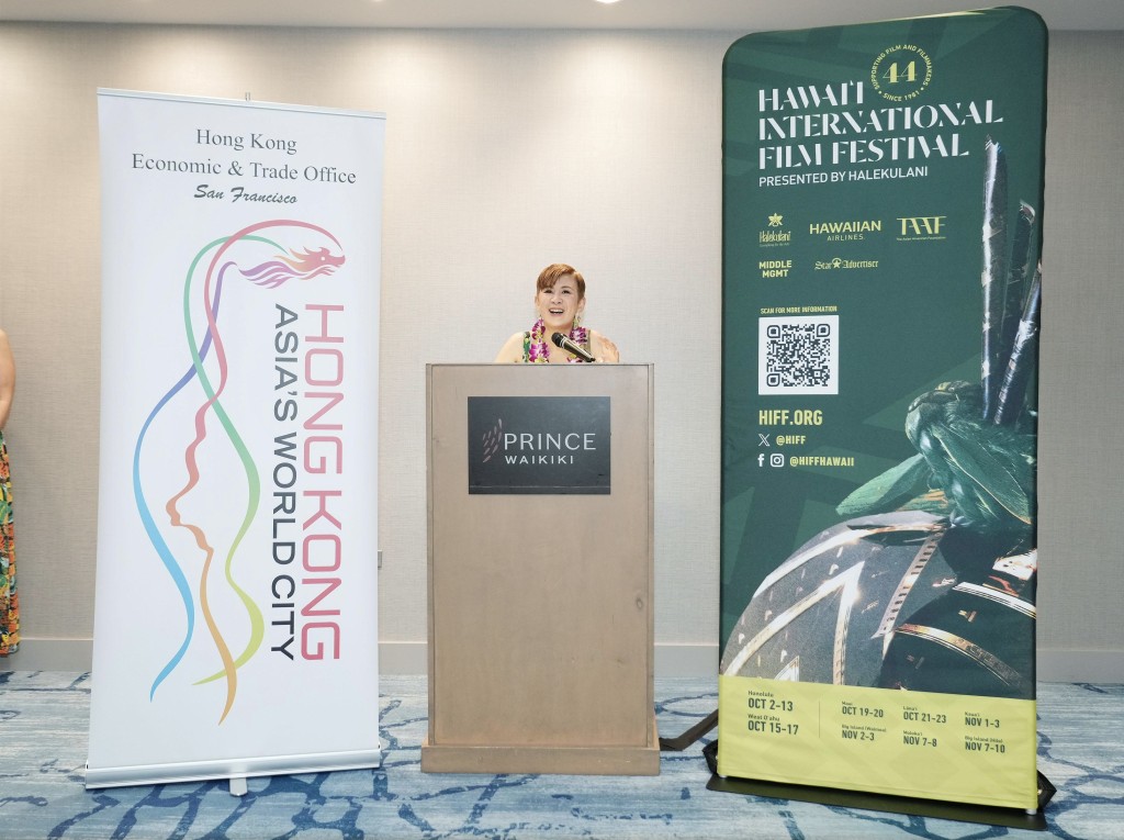 ▲吴君如偕陈可辛飞赴夏威夷出席第44届夏威夷国际电影节。