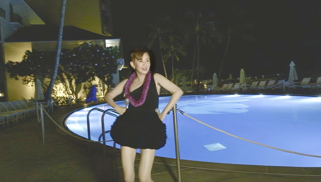 入行40年,拍了超过150部作品的吴君如,日前偕陈可辛飞赴夏威夷出席第44届“夏威夷国际电影节”,从华籍荷里活演员Ronny Chieng手上接过“焦点香港影人”(HIFF SPOTLIGHT ON HONG KONG FILMMAKER IN PROFILE AWARD)奖项殊荣后,履行之前承诺,一身夏威夷风情打扮的她走到泳池边,手执沙鎚的摆动身躯,腰肢撩人地跳草裙舞“找数”。