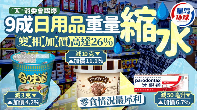 消委会超市价格|缩水式通胀|近年百物腾贵,不少市民有感日常生活百上加斤。消费者委员会(下称消委会)表示在疫情期间,持续接获消费者反映,部分商品容量或重量似乎有“缩水”的情况出现,认为不少日用品也变相加价。为厘清消费者疑虑,分析是“缩水式通胀”的情况是否普遍,消委会今日公布一项调查,针对62款食品、日用品的容量和重量变化,并分析相关的价格波动,结果发现逾 9成调查货品容量或重量减少,部份出现每单位价格上升趋势。