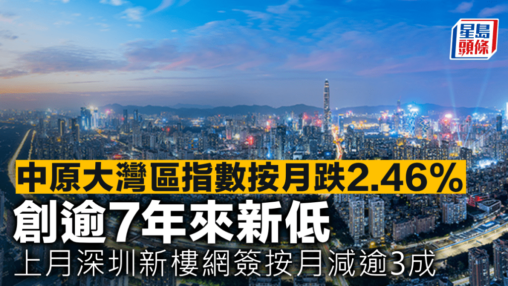 中原大湾区指数9月报94.18点,按月跌2.46%,已连跌16个月,创2017年2月之后逾7年新低。