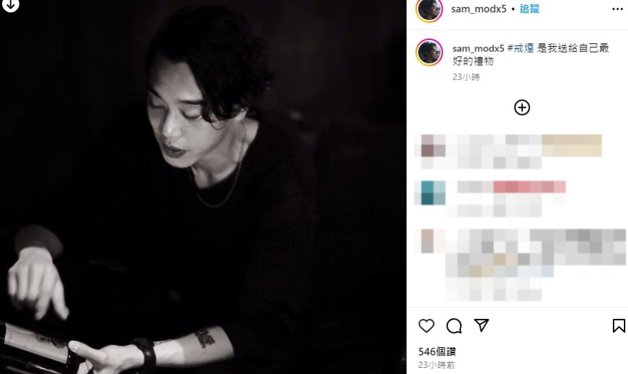 ▲Sam16日就在IG上发文,表示:“戒烟是我送给自己最好的礼物。”短短一席话,引起外界猜测是否好事近了?