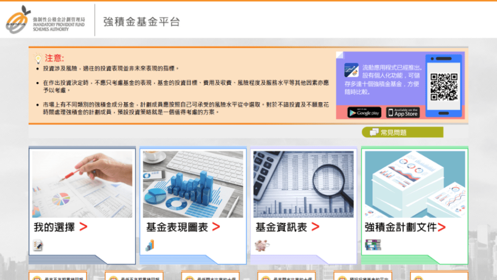 ▲市民可积金局网站,在主页进入“强积金比较平台”浏览基金表现等资料。