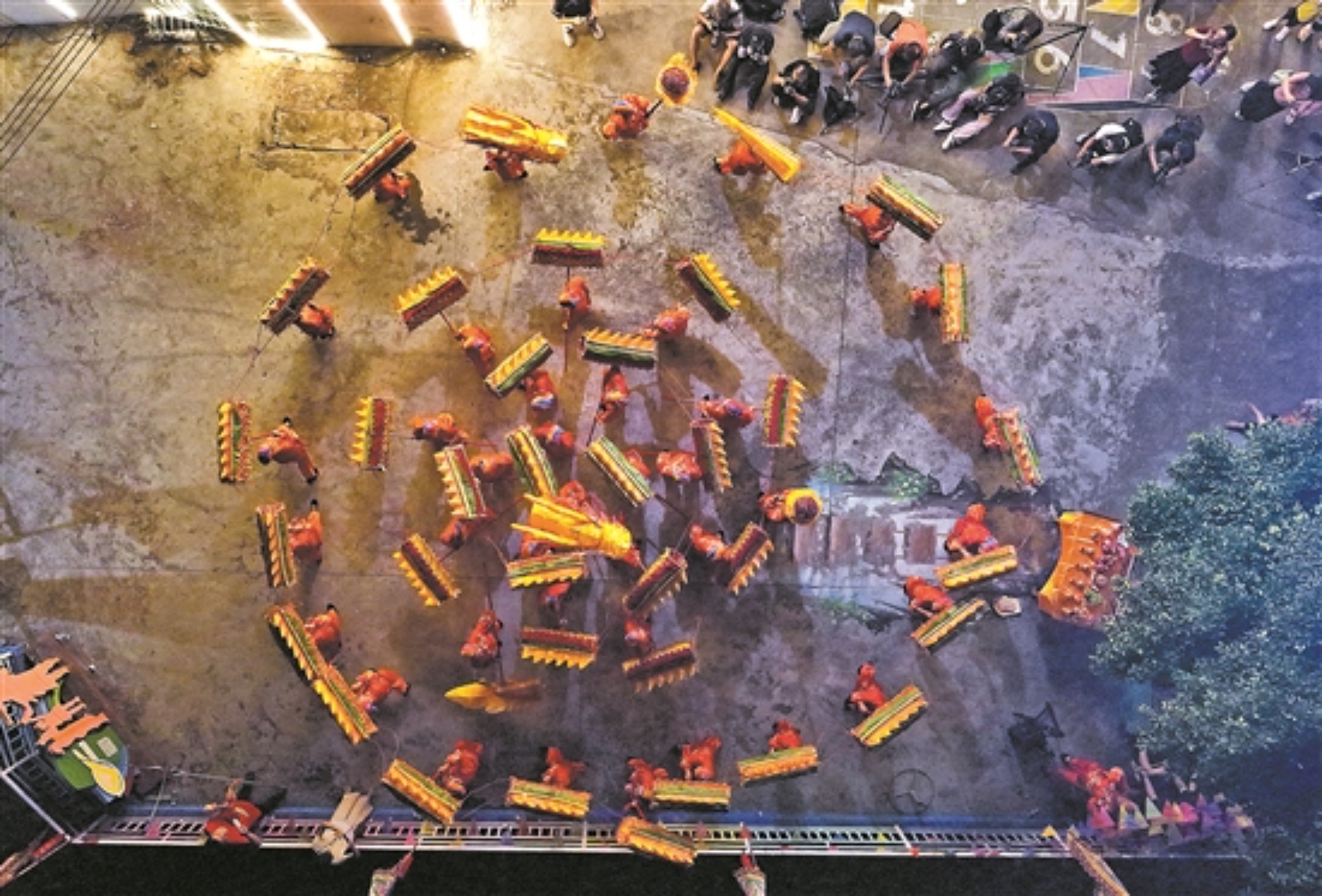 日前,在珠海市斗门区莲洲镇横山村,一场盛大的民俗活动——“七月三十装路香”如约而至。傍晚时分,横山村形成了一条蜿蜒曲折、香气扑鼻的“香路”。随着一阵激昂的鼓点响起,“火龙”开始在街道上翻腾跳跃,时而盘旋上升,时而俯冲而下,宛如一条“火龙”在夜空中翱翔。