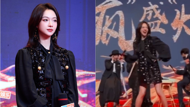 吴谨言上个月和合作《延禧攻略》的洪尧闪婚后,网络上就疯传她带球嫁,但本人和经纪公司没有正面回应。新婚的吴谨言近期则积极宣传新戏《春花焰》,敬业的她17日努力藏肚、脚踩高跟鞋,在新戏发布会上拿鞭子搞笑跳舞,夸张又狂野举动让新戏搭档刘学义看不下去,直呼吴谨言太疯了。
