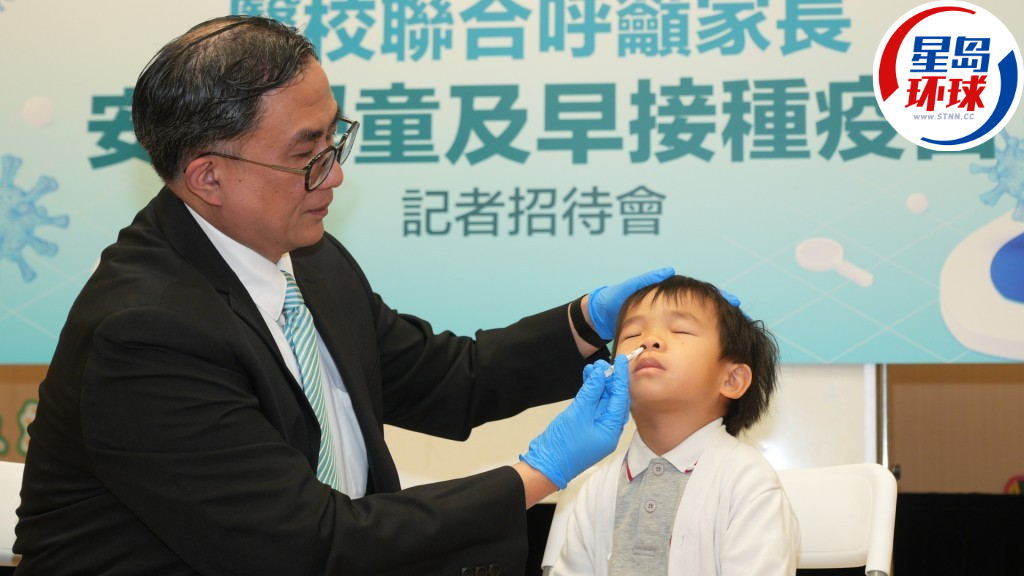 记者会上,关日华亦在徵得家长的同意下,为一名小童即场示范接种喷鼻式流感疫苗。该小童表现平静、乖巧。