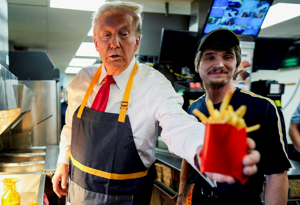 综合美联社、《纽约时报》(New York Times)报导,特朗普昨日到宾州一家麦当劳打工,此行显然剑指民主党对手贺锦丽,特朗普不断指控贺锦丽称大学时期曾在麦当劳打工的说法是撒谎,不过他的指控毫无根据,贺锦丽的友人也证实贺曾在麦当劳打工。