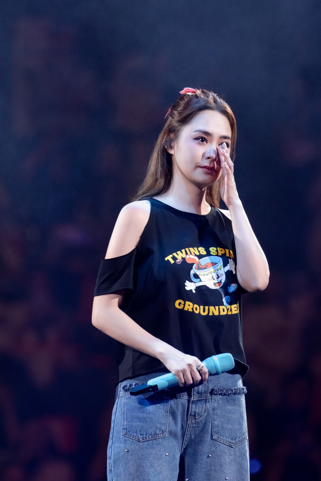 前晚是Twins内地最后一场演唱会,歌迷特别不舍及疯狂,从第一首歌开始企晒起身跟著Twins又跳又唱,直到散场也不肯坐低。不少歌迷更穿著打扮进场,有人扮古装,有人扮小丑爆炸头,又有著睡衣的,气氛非常热闹。演唱会完第一部份快歌后 , 阿娇见歌迷热情,已经开始被感动到眼湿湿,坦言,“哗,咩事,一出嚟就已经想喊。”两人唱到不少经典金曲时,每每也被歌迷的大合唱歌声感动到眼湿湿多次,到完场时,两人再也忍不住泪水,到大合唱‘唱风筝与风’时,都被感动得不断抹眼泪。不舍得跟歌迷挥手暂别。