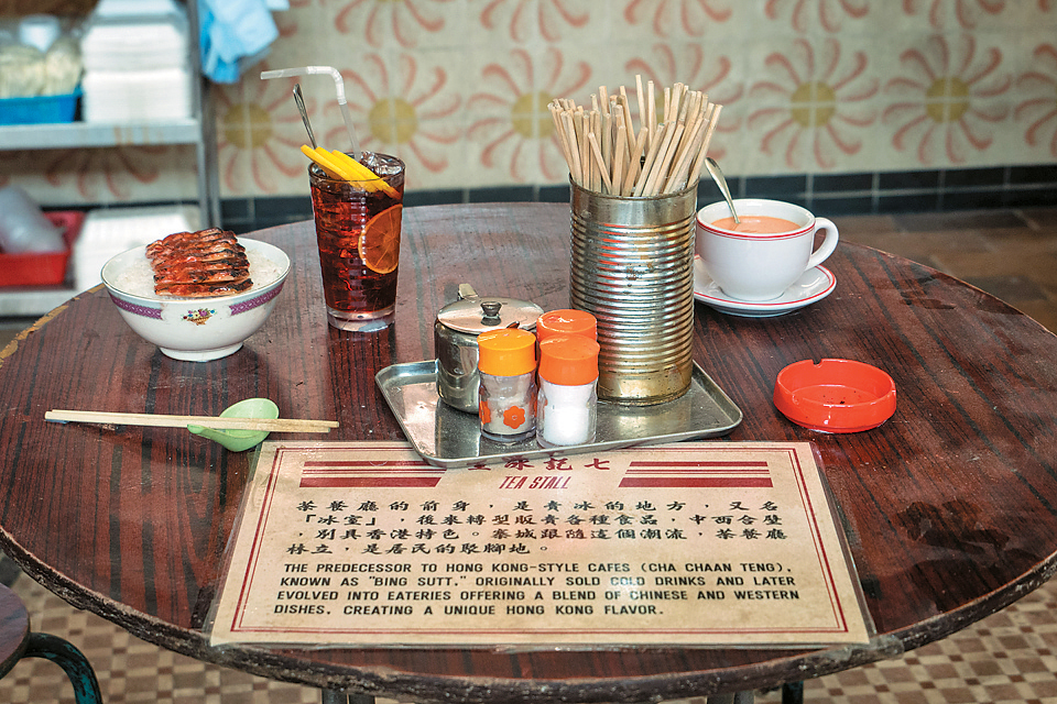 这个1:1电影场景展览为一幢约6.5米高的双层旧建筑,顶部悬挂一块“九龙城寨”字样的巨大霓虹灯牌。灯牌下是电影主角之一陈洛军落难暂居的冰室阁楼,阁楼更放有陈洛军与兄弟信一、 十二少和四仔建立情谊的麻雀 。地下七记冰室餐桌上的那碗叉烧饭,令人忆起电影中的感人情节。