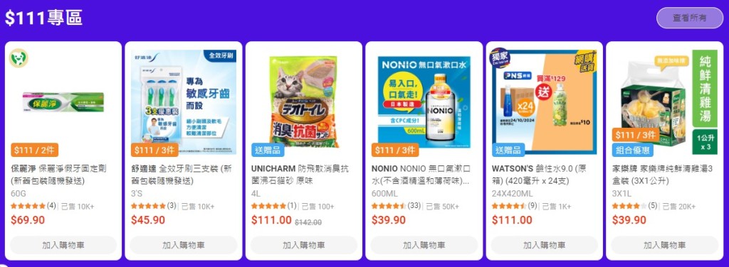 在双11来临前夕,百佳网购PNS率先推出多个早鸟优惠,设有$11、$111、低至89折及原箱好抵买4大专区,零食、饮品、个人护理用品、家品等多件货品均以低至$5.5的价钱发售,相当抵买,凡买满$350更可享免运费。