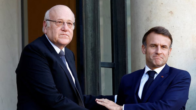 ▲黎巴嫩总理米卡提(左)与法国总统马克龙(右)。路透社