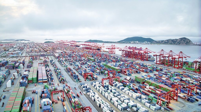 ▲美国《华尔街日报》网站称,世界银行数据显示,以船只在港耗时计,中国洋山港排名第一,而表现最好的美国港口仅排名第53。新华社