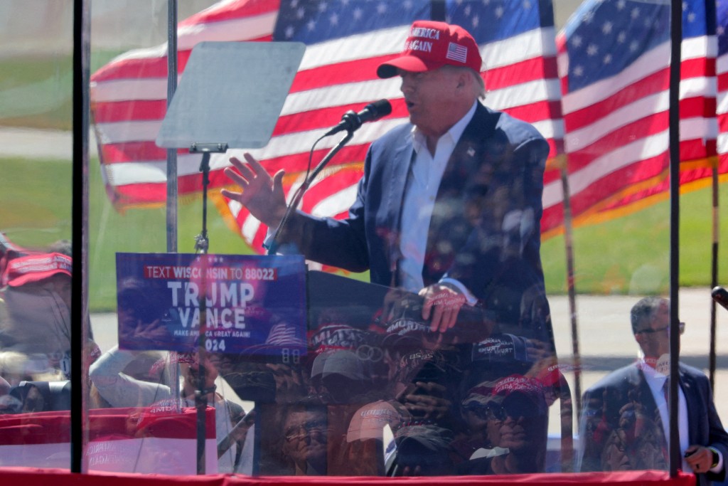 ▲特朗普在关键摇摆州威斯康辛州造势大打经济牌。路透社