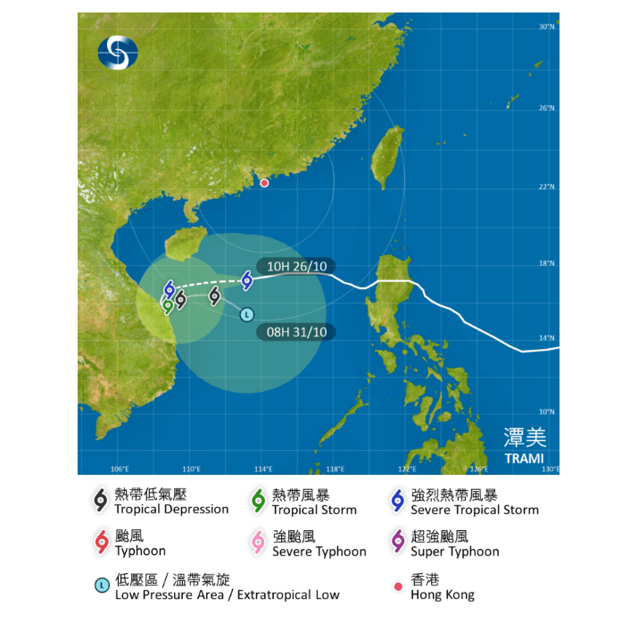 热带气旋潭美会在今日横过南海中北部并移向海南岛以南海域。同时,东北季候风会继续影响华南。受东北季候风及潭美的共同影响,华南沿岸及南海北部风势颇大及有几阵狂风骤雨。随后潭美的移动路径及强度存在变量,有机会在下周初于海南岛以南海域徘徊,甚至转向偏东方向再次横过南海中北部,但预料潭美届时有所减弱,并与广东沿岸保持相当距离。