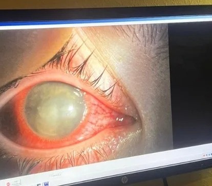 但她的疼痛持续了数周。她眼睛的外层开始变得浑浊。她再求医后,医生认为这是感染造成的伤害。她被转介给一位专家,专家扫描了她的眼睛,看到了白色浑浊物质的斑点,并确定寄生虫已钻入这位年轻女子的角膜中。