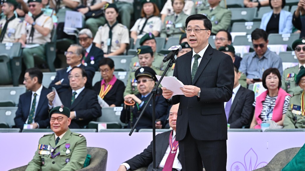 香港童军总会今早(27日)举行年度大会操,身兼香港童军总领袖的行政长官李家超出席检阅仪式,他致辞时表示,香港童军总会青少年成员超过三万四千人,总会协助青年提升自己、发掘潜能,而施政报告提出多项措施,希望培育香港年轻人才,加强支援青年发展。