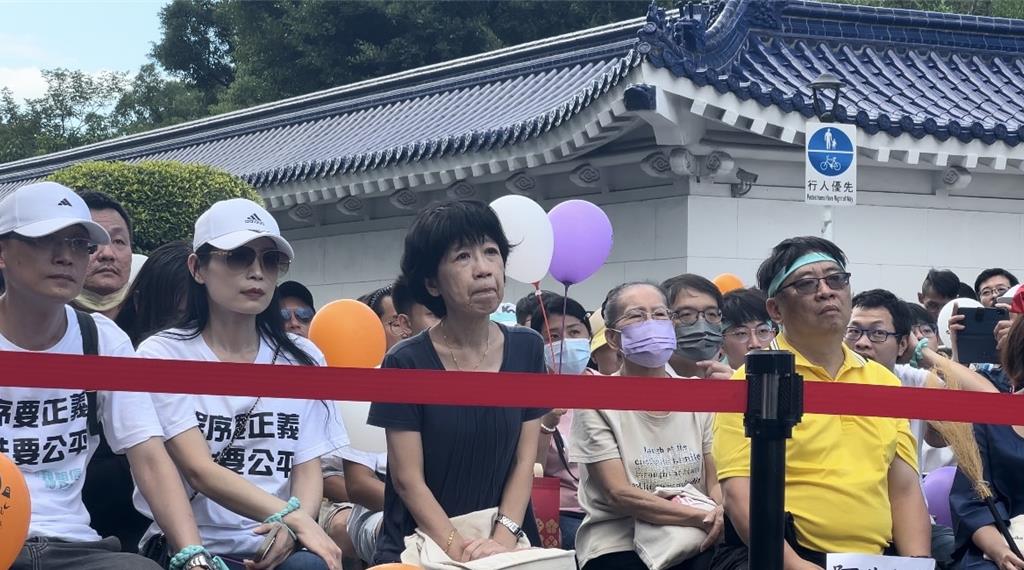 ▲民众党今天下午在“中正纪念堂旁爱国东路”封街,举行“赖政府,搞什么鬼?”集结活动,民众党主席柯文哲妻子陈佩琪现身,激动落泪。(中时新闻网)