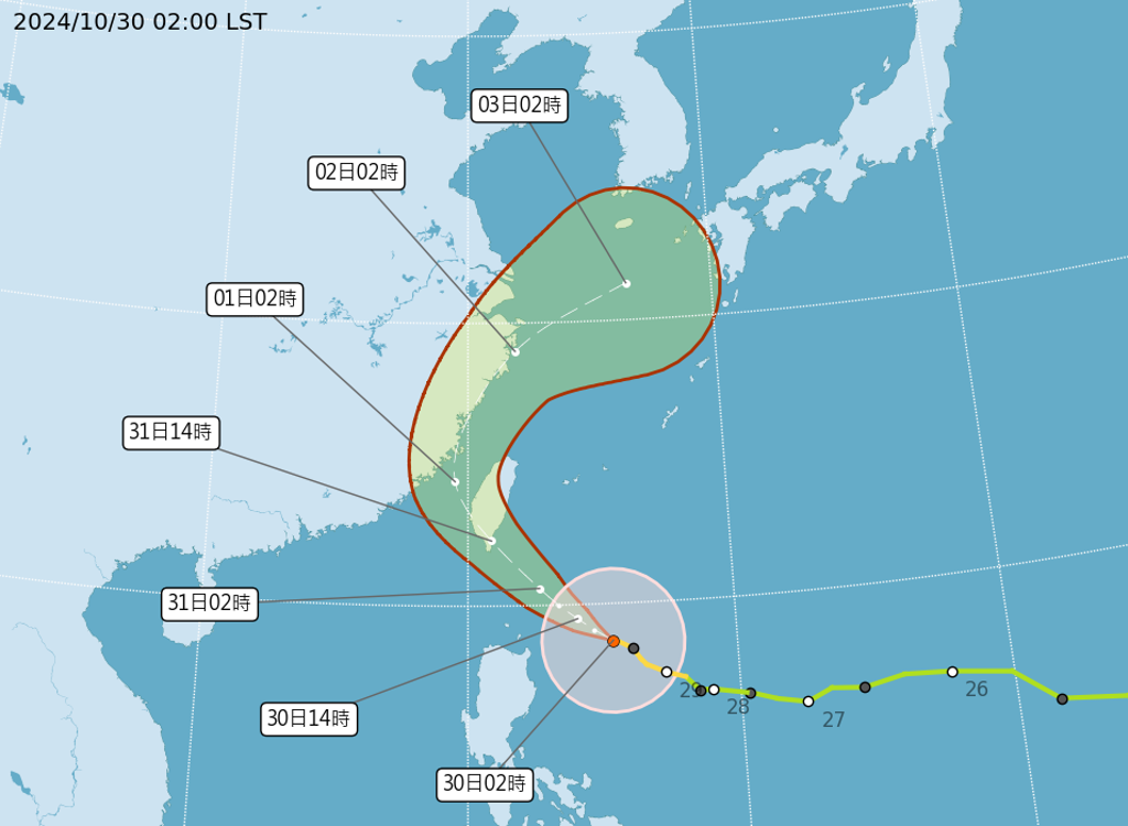▲台气象部门今晨5点半发布陆上台风警报,依目前路径来看,康妮预估明天中午前后从台东登陆。(台气象部门提供)