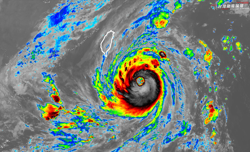 ▲台湾台风论坛表示,康妮又大又破的台风眼已经开始紧缩,代表持续增强,预估30日眼睛就会缩小,威力达到巅峰。(图/台湾台风论坛)