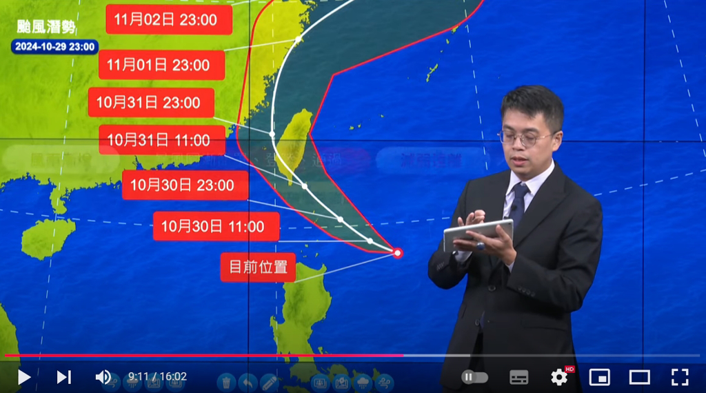 ▲台气象部门预报中心科长林伯东指出,无论是海温以及垂直风切,都是有利于台风发展的条件,因此康妮仍持续增强,且暴风圈还会更大。(图/台气象部门直播)